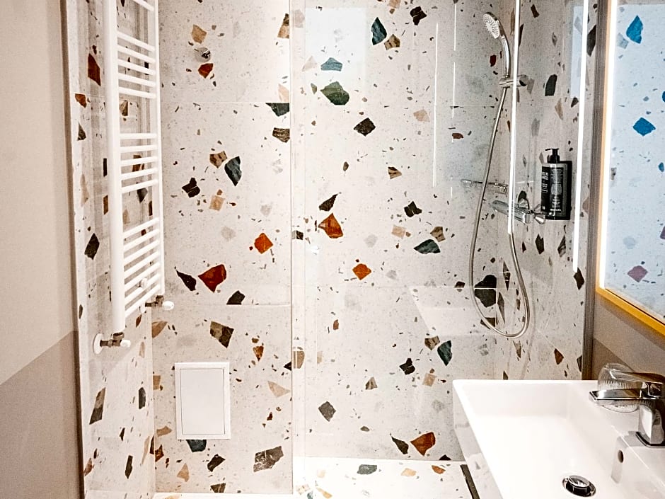 The spacious double room provides air conditioning, soundproof walls, as well as a private bathroom featuring a shower and a hairdryer. The double room features a TV, a tea and coffee maker, a wardrobe, a safe deposit box as well as an inner courtyard view. The unit offers 1 bed.